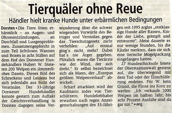 Zehn Monate Freiheitsstrafe auf Bewährung für Hundehändler Dorsten.