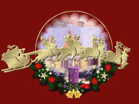 einem Rentier-Schlitten durch die Luft geflogen kommt. Ganz und